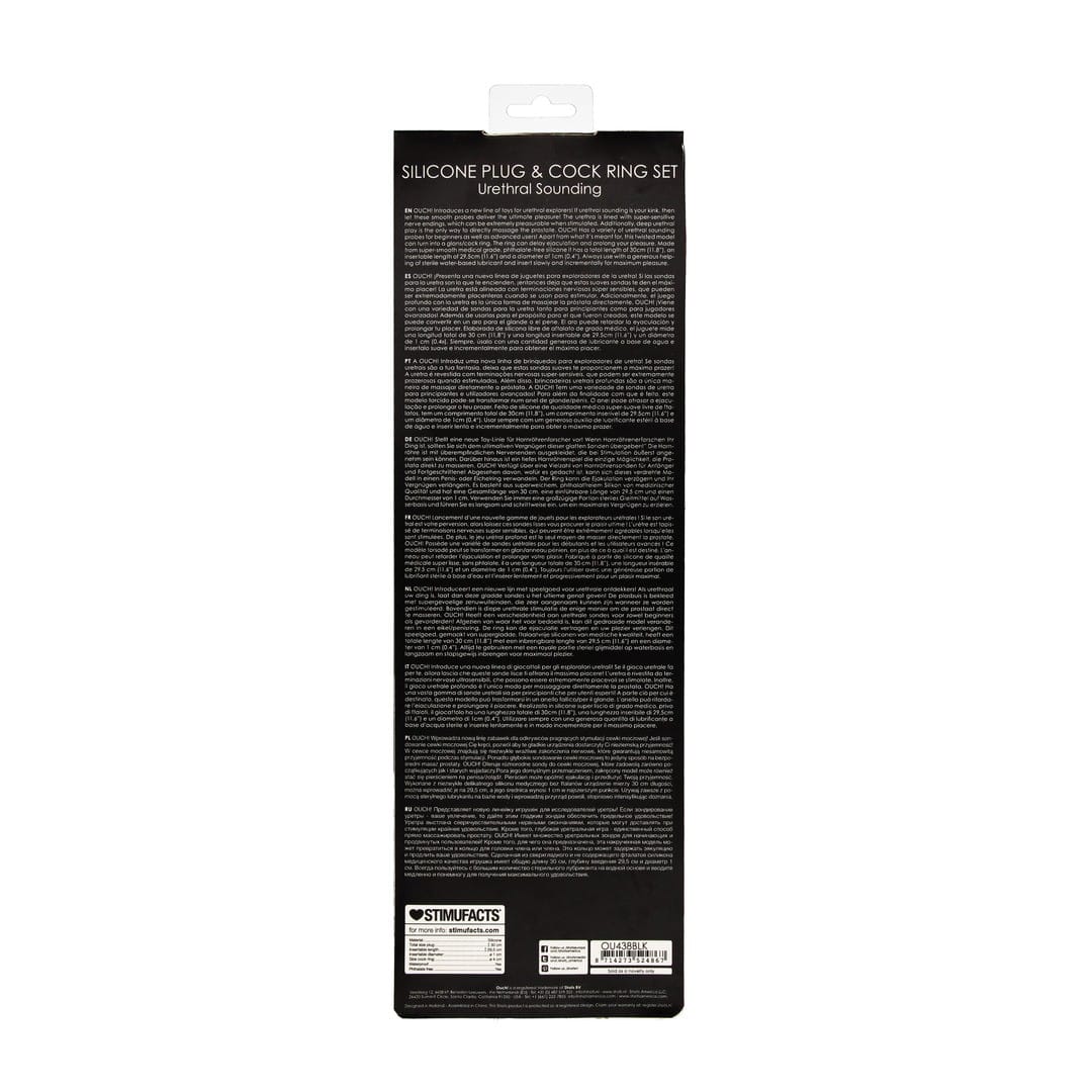 CONJUNTO DE SONDA DE URETRA COM ANEL PENIANO DE SILICONE PRETO OUCH!