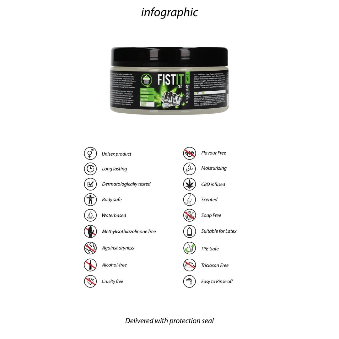 Lubrificante à base de água. Contém o ingrediente ativo CBD (Cannabidiol). Adequado para utilização com preservativos de látex. Dermatologicamente testado, sem gordura, incolor, inodoro e insípido.